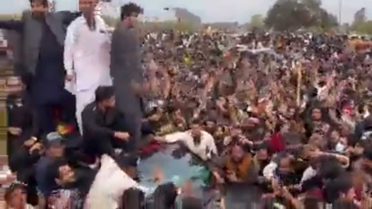 A video has now been shared showing Khan's moving car through a sea of supporters and party workers. Pakistani journalist Jameel Farooqui while sharing the video wrote, " after enduring shelling and fascism all day, a sea of workers on the Srinagar highway was there to welcome Imran Khan (Video Credit - Abdul Qadir)."
