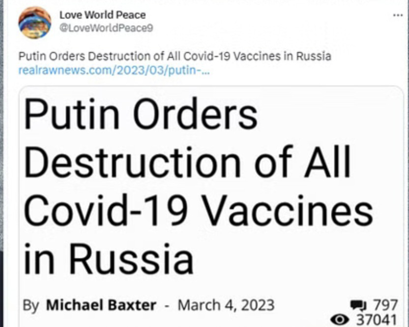 "Putin orders destruction of all COVID-19 vaccines in Russia," read the headline in the viral post.