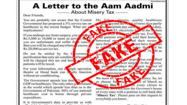 "A tweet claims that the central government has proposed a 5% tax on healthcare in the recent #Budget. #PIBFactCheck. This claim is #Fake. The letter attached with the tweet is from year 2011 and is being shared out of context, PIB Fact Check said on Twitter.