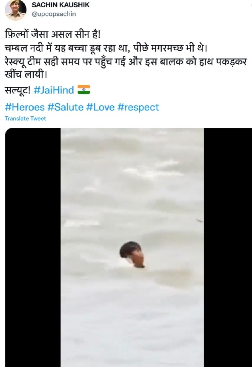 SDRF team rescues drowning boy from Chambal river