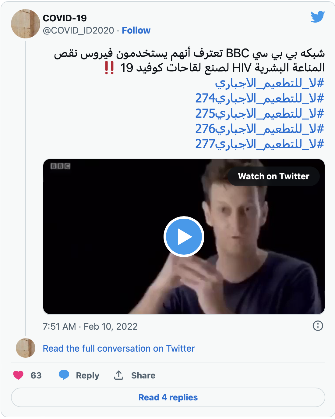 A social media post very dangerous in nature claims that the BBC had admitted to the use of HIV in the making of the COVID-19 vaccine.