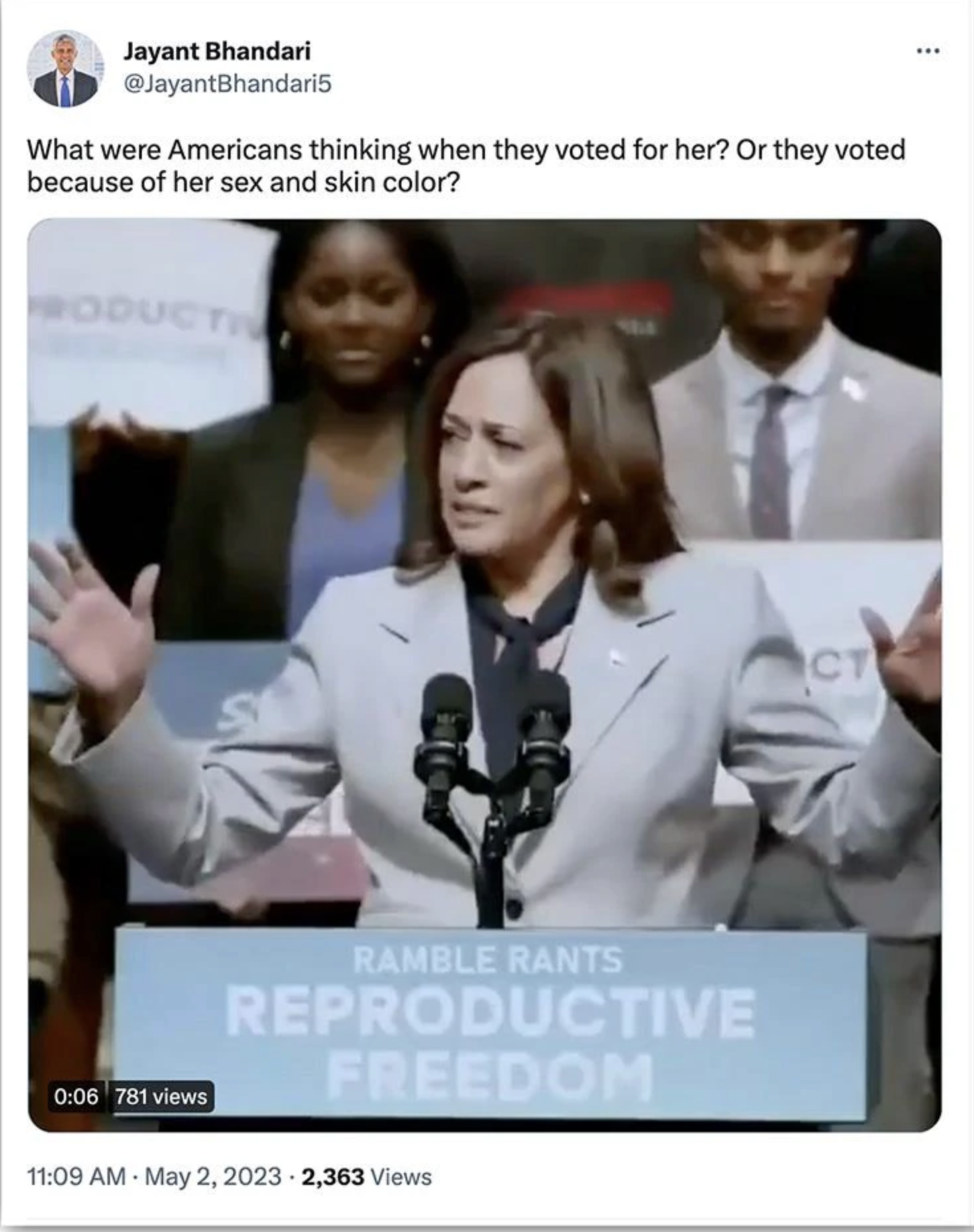 "What were Americans thinking when they voted for her. Or they voted for because of her sex and skin colour," wrote on user while sharing the viral clip.