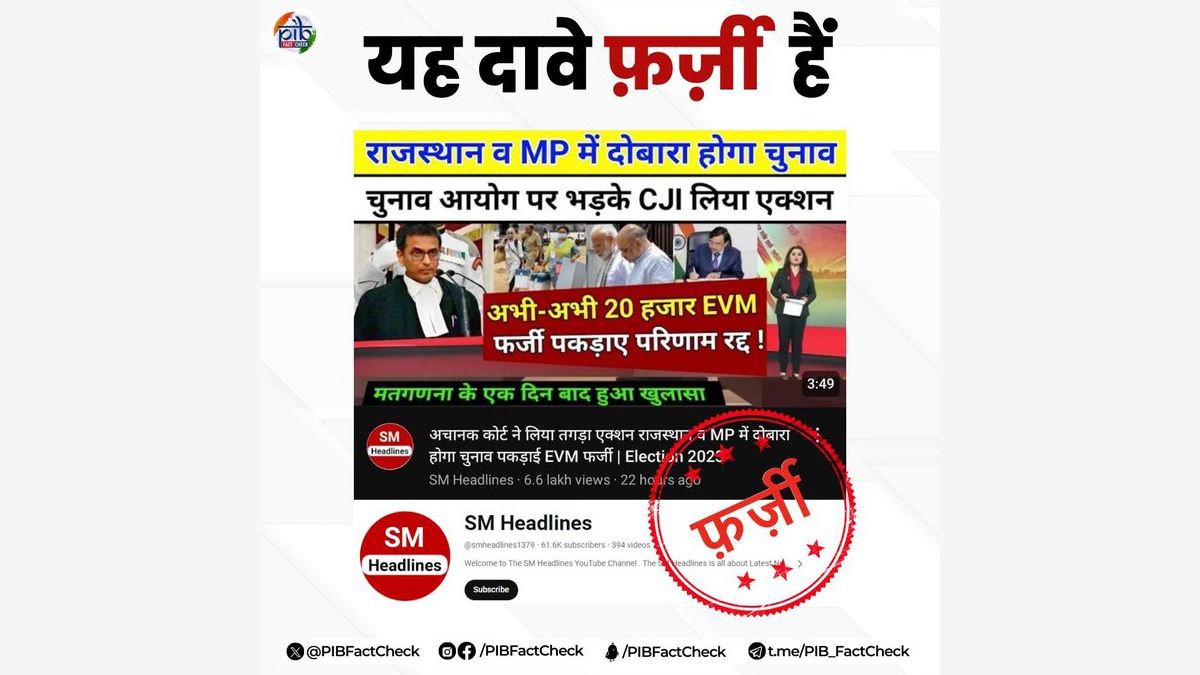 The YouTube channel 'SM Headlines' claimed in its video that due to malfunctions in the electronic voting machines, the Chief Justice has criticised the Election Commission, and as a result, there will be re-elections in Rajasthan and Madhya Pradesh.