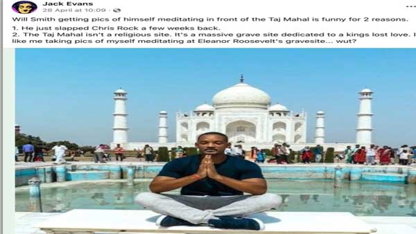 Smith who later apologised for his act has been banned from the academy for 10 years. Now an image of his meditating in front of the Taj Mahal has gone viral. Why is Will Smith praying outside Taj Mahal?
