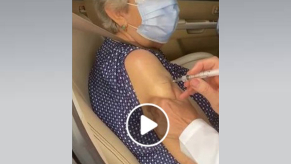 In the videos shared, a healthcare worker is seen inserting the needle in a woman's arm, but the syringe is not pushed to inject the vaccine.