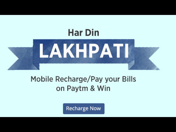 Stand a chance to win 1 Lakh daily with Paytm offer! Recharge now!(Promo code: LAKHPATI)*