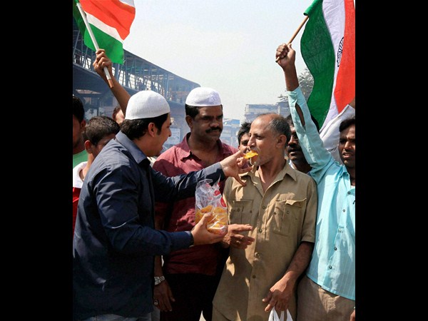 Mumbai: MNS party workers celebrate the hanging of Ajmal Kasab, the lone surviving terrorist of 2008 Mumbai terror attacks, in Mumbai.