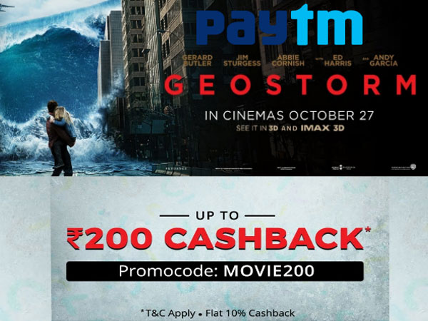This weekend, there is a storm swirling in the theaters. A storm that has never been seen before and it is threatening the very existence of the planet. It all started when World leaders came up with an idea to stop the bizarre series of natural disasters; a well-organized network of satellites that can control the global climate. The idea was to keep everybody safe but pushing unprecedented man's laws to nature is going to burst into a problem, a threat named geostorm is about to wipe out everything and everyone. Geostorm, Fantasy/Science fiction film is in theaters now. Book your movie tickets via Paytm with the below-mentioned promo codes to get up to Rs. 200 Cashback right now!