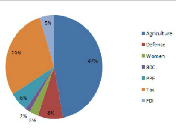 Personal Income Tax, relief in tax and measures to increase investment were the topics which received highest percentage of tweets followed by FDI in Defence, Kisan television, Beti bachao programme and the comparison between the funds allocated for Sardar Patel's statue and women's safety. Here are the segregation of tweets.