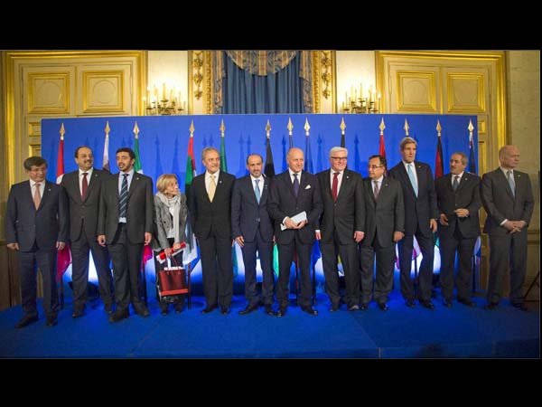 The statement made on Sunday from Ahmad al-Jarba comes as U.S. Secretary of State John Kerry and top envoys from 10 other countries raised the pressure for peace talks that would bring his Syrian National Coalition face-to-face with the government the rebels are trying to overthrow.