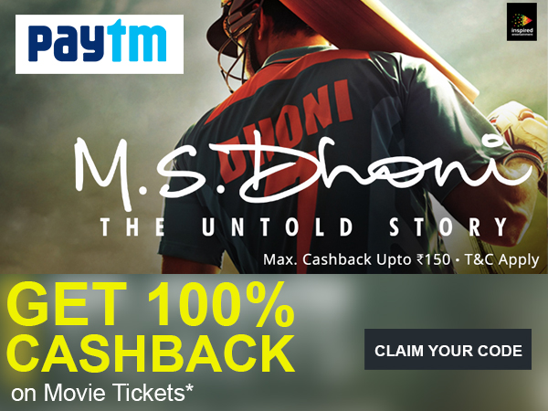 - Watch the Untold story of MS Dhoni the movie Now at 100% cashback on the second ticket (Click to book now)
