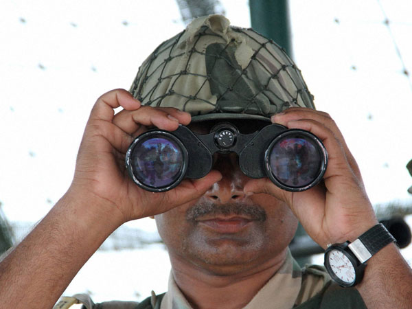Akhnoor: BSF personnel keep tight vigil at the India and Pakistan International Border at Gakhrial of Akhnoor sector about 55 km from Jammu on Saturday.PTI