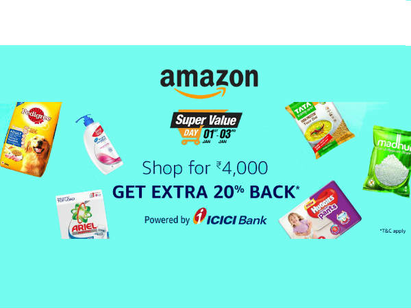 It's your last chance of this month to grab the huge Cashback on Amazon Pantry. The monthly grocery sale which gives back up to a maximum of Rs. 1200 ends tonight at 12. Now also take the most advantage of the super value day offer; simply fill the pantry box with required items for this month and checkout with ICICI Bank card to get 20% Cashback. Check below for the more saving options, deals, and rest of the bank offers right now!