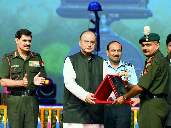 Jaitley, with Army Chief General Dalbir Singh Suhag and Air Chief Arup Raha, honoured Param Vir Chakra Awardee, Subedar Yogender Singh during the celebration.