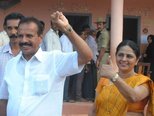 Former CM DV Sadananda Gowda voted at Padeel at Dakshina Kannada district along wife Datty Sadananda Gowda.