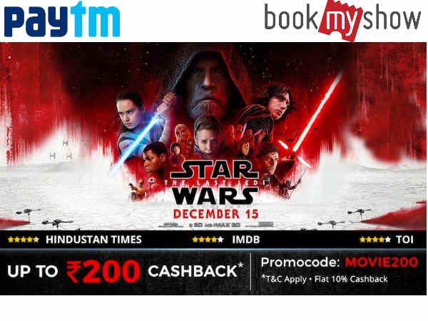 Star Wars Fans: The Last Jedi Tickets Upto Rs.200 Cashback*