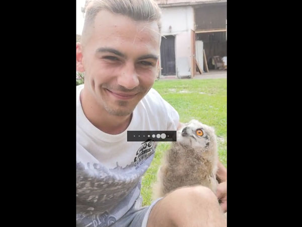 This is indeed a sweet camaraderie between the man and the baby owl.