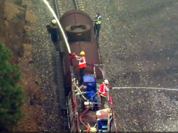 In the video above, a group of firefighters are seen aboard a train which moves in the Shasta County in California to contain the Delta Fire by spraying water on the forests along the tracks. The Sacramento River is seen flowing by the side. The Delta Fire turned threatening and officials closed sections of the local highway traffic in both directions and warned the residents in the area that the fire posed a risk. Here, firefighters are seen spraying water from hoses and water tanks fitted in the train on both sides while one can see a blaze at a distance. Delta fire was burning over 40,000 acres on September 9 and a very few portion of it could be contained.