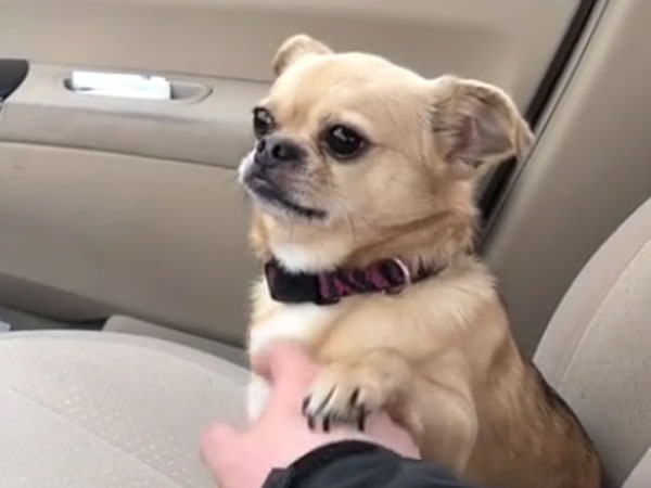 Little dog does not allow its owner to drive car and instead do this