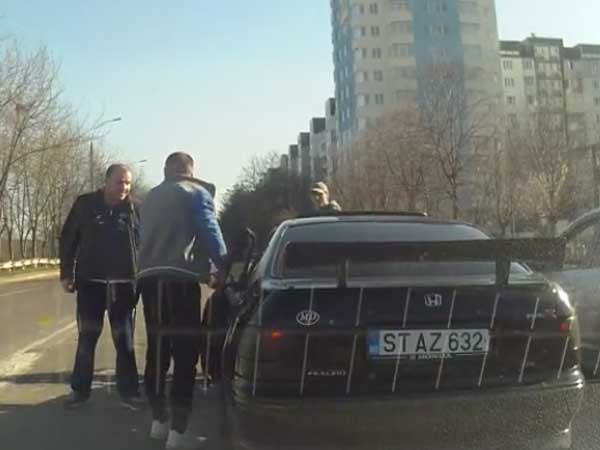 It is a case of a road rage but in the end, it is quite a funny outcome. The video shows the driver of the black Honda car getting pissed off with that of another and gets out of his car with a baseball bat out of anger. He is angry that the driver of the grey sedan did something silly while driving (though the video doesn't show it) and plans to teach him a lesson.