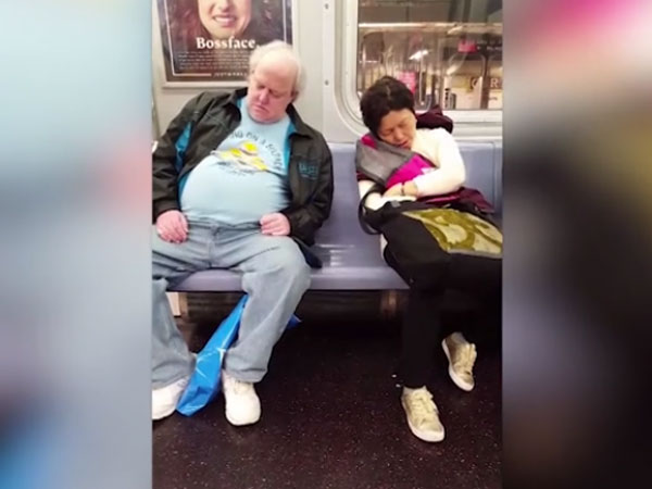 This hilarious video has been filmed in the subway in New York, USA. Demitrio Albano saw the two fellow commuters dozing off and almost colliding into each other.