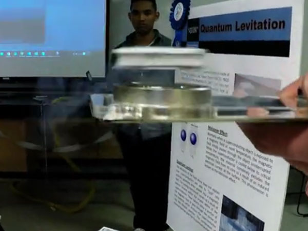 The above video shows a young nano-science student Josh Van der Zalm placing a super-cooled ceramic plate over a magnet and shows that it remained locked in whatever position he kept it, even tilted. The object even runs in a circular way over a track without any physical support.