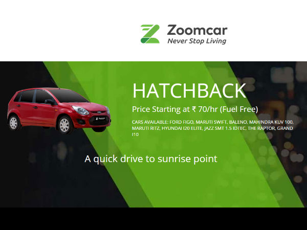 There is no mountain in the world that you can't climb; with the support and remedy of your dear friends and family, everything becomes possible. Now choose the sunrise point or any other sightseeing locations and sum it up the year 2017 with the perfectly frame-able memories & all the 'never stop living' spirit starts at Rs. 70/hr with ZOOMCAR. Now chose the variety of your car and drive away to the rich nature atmosphere on the go. The sneaky-saves and the detailed price information lies below.