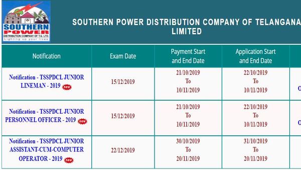 Telangana Jobs: TSSPDCL Junior Lineman jobs, JPO, JACO vacancies online application activated