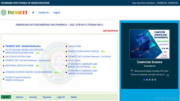 - Click on TS EAMCET 2022 seat allotment result link on the homepage
