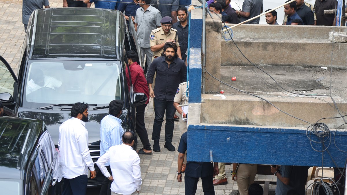Allu Arjun was summoned by the police and arrived at the station at 11 am, as per the notice issued to him. Heightened security measures were observed at his Jubilee Hills residence before his departure.