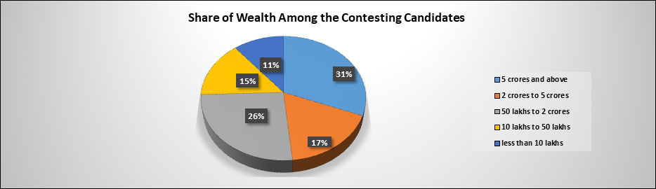 Party wise Crorepati Candidates: The role of money power in our elections is evident from the fact that all major political parties give tickets to wealthy candidates. Among the major parties 18(90%) out of 20 candidates analysed from BJP, 34(85%) out of 40 candidates analysed from NDPP, 13(59%) out of 22 candidates analysed from NPF, 4(57%) out of 7 candidates analysed from JD(U) and 6(26%) out of 23 candidates analysed from INC have declared assets valued more than Rs 1 crore.