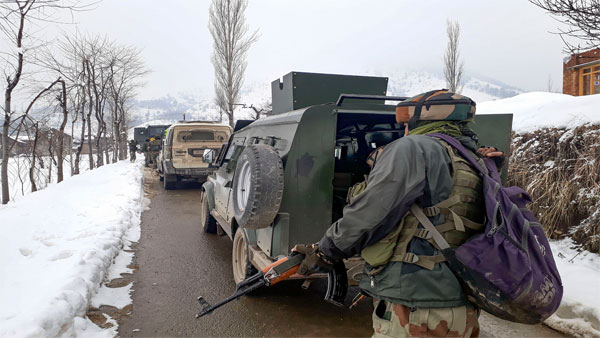 New Delhi, Feb 19: At least three militants were killed in an encounter with security forces in Pulwama district of Jammu and Kashmir, police officials said on Wednesday.