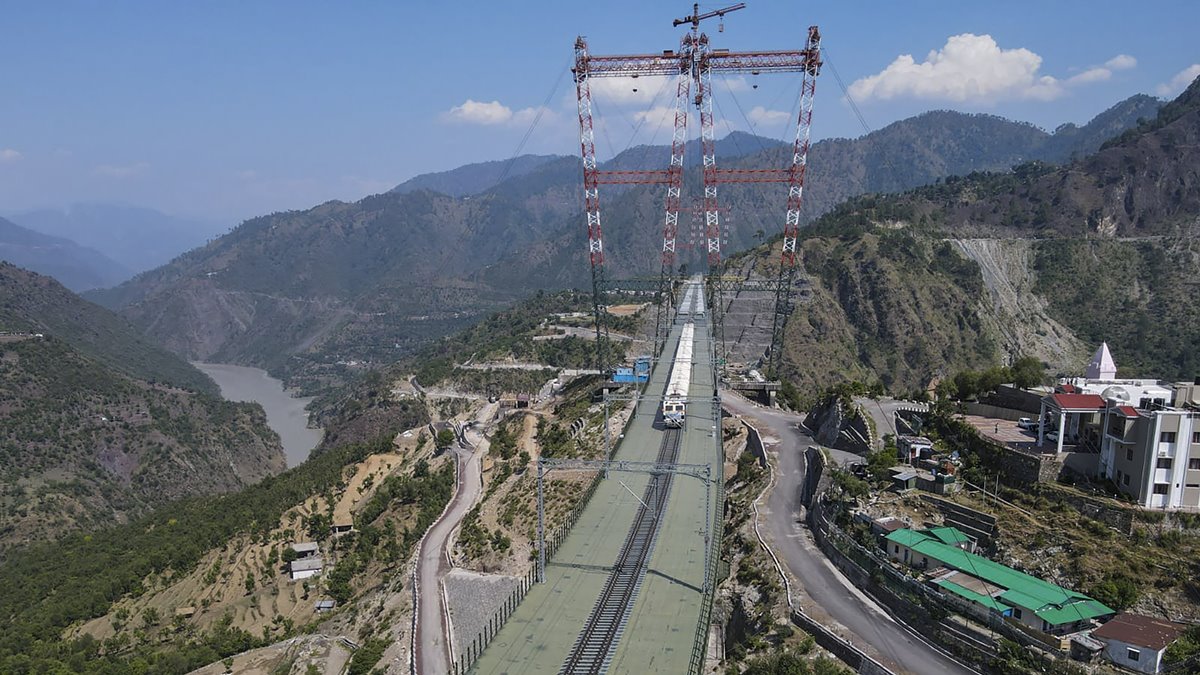 The architectural marvel Chenab Rail Bridge is a 1,315-metre-long steel arch bridge engineered to withstand seismic and wind conditions.
