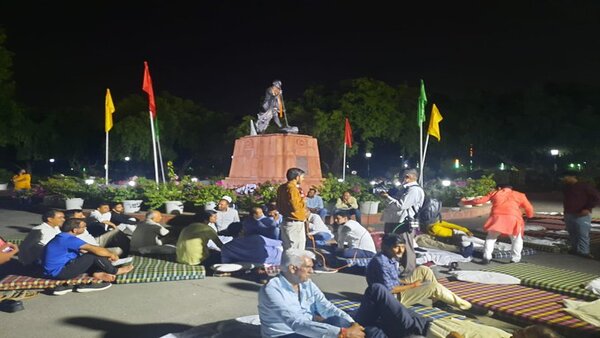 Holding placards, the AAP MLAs squatted near the Mahatma Gandhi statue, while BJP MLAs started their sit-in near the statues of Bhagat Singh, Raj Guru and Sukhdev inside the assembly premises.