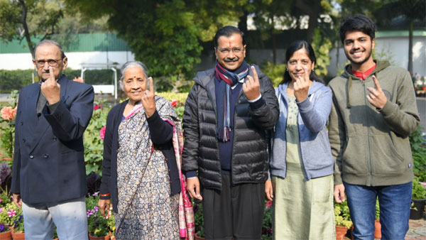The Delhi CM on Saturday morning posted a photo on Twitter with his family after they cast their vote, he wrote, "Voted along with my family, including my first-time voter son. Urge all young voters to come out to vote. Your participation strengthens democracy."