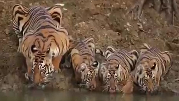 New Delhi, Nov 08: An adorable video of a family of tigers drinking water from a river has gone viral on social media. The video shows four tigers three out of which appear to be cubs drinking water from a river.