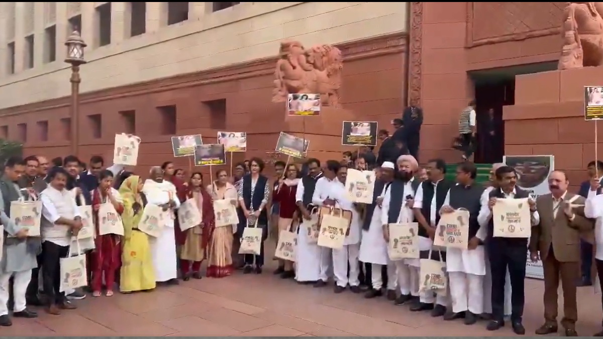 A day after Priyanka Gandhi Vadra, Congress MP, made headlines by carrying a pro-Palestine bag to Parliament, she and other Opposition MPs were seen on Tuesday with another symbolic tote bag. This time, the bag highlighted the plight of minorities in Bangladesh, bearing the message, "Stand with Bangladeshi Hindus and Christians."