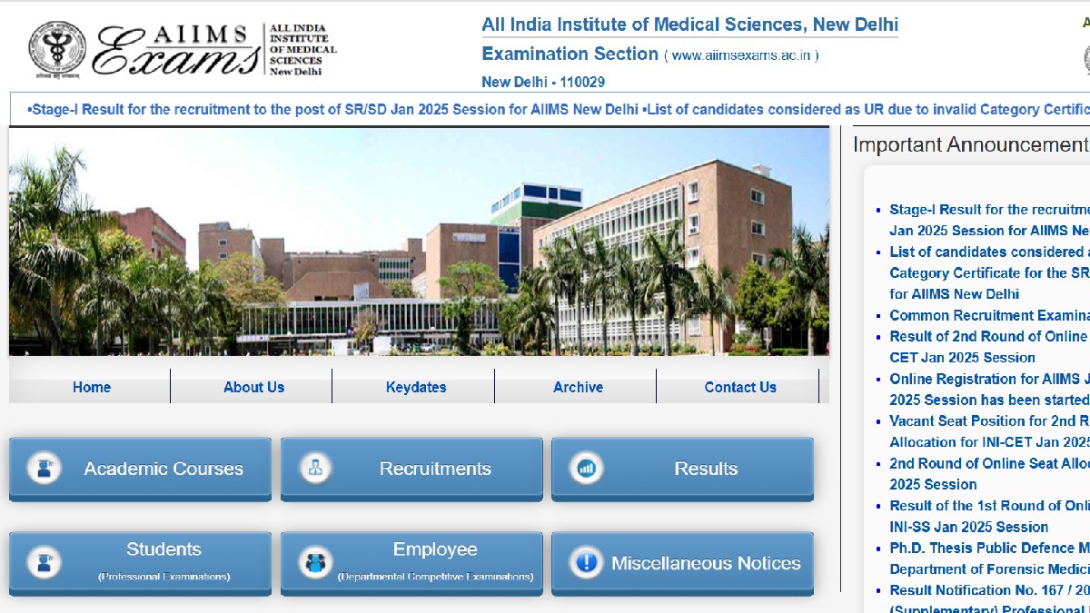 The All India Institute of Medical Sciences (AIIMS) announced the Combined Recruitment Examination (CRE) 2025 on January 7, with 4576 vacancies across various posts, according to a Jagran Josh report. These positions include Assistant Dietician, Administrative Assistant, Data Entry Operator, Junior Administrative Officer, Assistant Engineer, Manifold Technician, Draftsman, Laundry Supervisor, and several others.