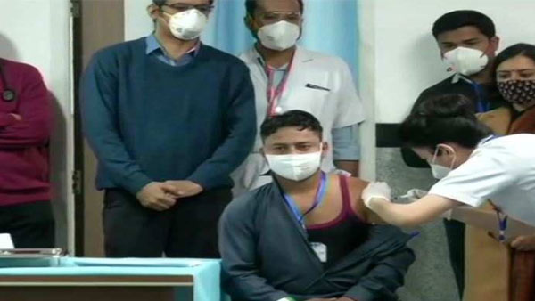 New Delhi, Jan 16: A sanitation worker became the first person to receive vaccine jab at AIIMS, Delhi on Saturday.