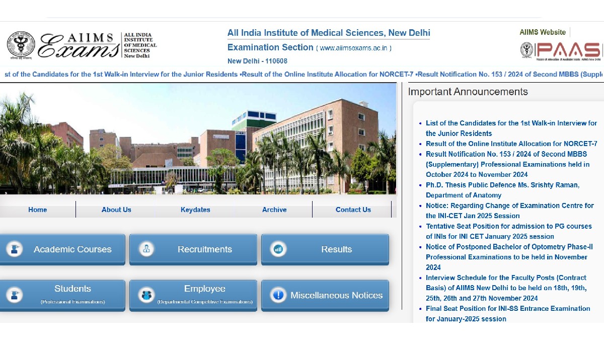 1. Go to the official AIIMS website at aiimsexams.ac.in.