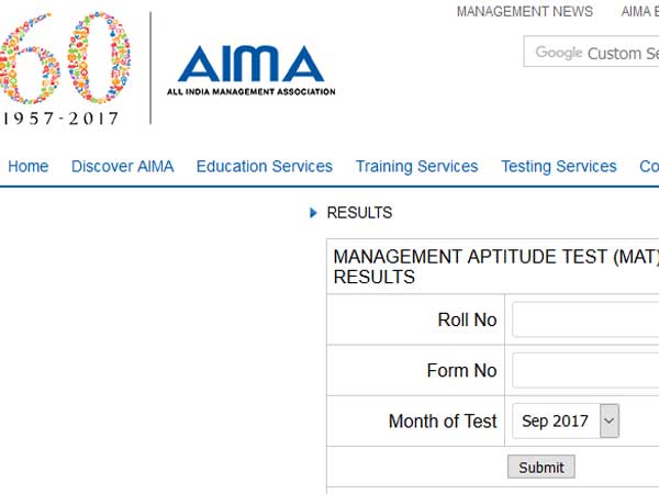 The AIMA MAT September 2017 results have been declared. The results are available on the official website.