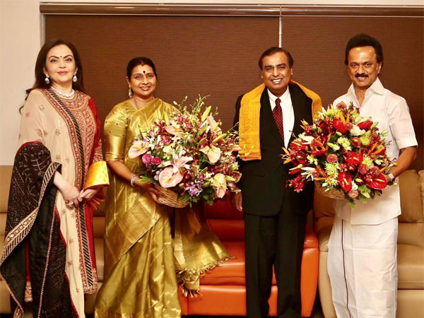 Stalin shared pictures of Mr Ambani and Nita at his residence, on Twitter. Stalin Tweeted, "It was a pleasure to receive a courtesy call from Thiru Mukesh Ambani, Chairman Reliance Industries Limited, in Chennai earlier this evening."