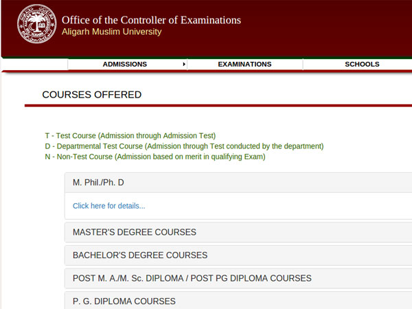 - For complete information on all the courses offered by Aligarh Muslim University (AMU), Course durations, AMU exams dates and AMU application process Click Here.