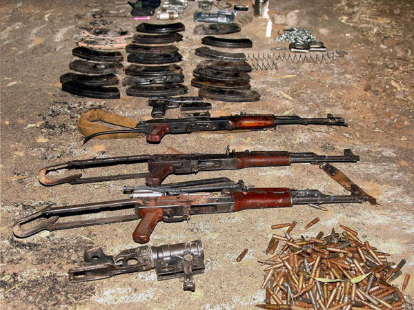Officials said a joint operation was launched by the CRPF and state police in the district after which a 7.62 mm light machine gun, a semi-automatic US made the rifle, an AK 47, a self-loading rifle, three INSAS rifles, six other guns and some communication gadgets were seized from a hideout.