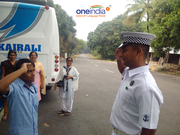 The photo was captured by this writer outside the INA main gate on November 28. It was a mere coincidence that OneIndia was present while Sandeep (a special child) was saluting Rajeev (of the Naval Police). Sandeep is a student of Sneha Nilaya Special School, Kaakanaadu (Kochi) and had visited the INA along with other children as part of Indian Navy's outreach programme.
