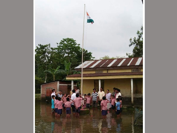 The people of Assam who are battling floods were not deterred when it came to Independence Day. Photographs of students saluting the National Flag despite the heavy floods have been shared extensively on the social media.