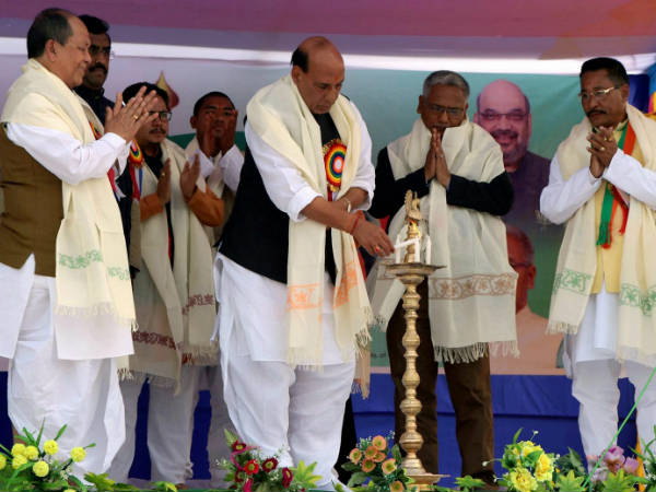 In a throwback to traditional Manipuri practice, at the 'Athenpot Thinba' gifts specially different kinds of rice, sweets, honey, fruits, vegetables and flowers in bamboo buckets and steel plates are offered near a bamboo shaft which has a party flag attached to it.