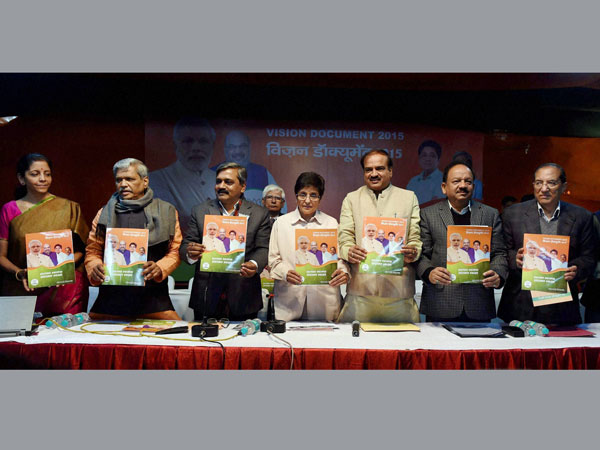 New Delhi, Feb 3: The Bharatiya Janata Party (BJP) on Tuesday released its Vision Document for the upcoming Delhi Assembly elections 2014. Senior BJP leaders, including Ananth Kumar, Satish Upadhyay, Harsh Vardhan, Nirmala Sitharaman and party's CM candidate Kiran Bedi, were present during the release of the party's vision document.