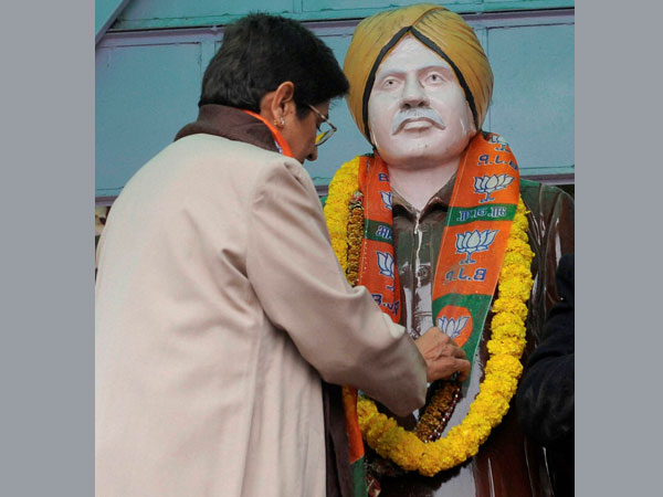 Before filing her nomination, Bedi paid tribute to Lala Lajpat Rai and also cleaned his statue in Krishna Nagar and put a saffron coloured BJP scarf (patka) having the party symbol around it. However, she removed it from the statue a few minutes later.