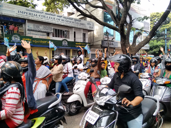 Women of all age groups took part in bike rally which covered 10 km distance which began from Kittur Rani Chennamma Sports Complex, Jayanagar covering Lal Bagh and ended at Jayanagar.